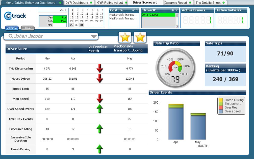 The Ctrack system enables companies to quickly and easily compare driving performance, monitoring a range of exceptions including harsh acceleration, braking, cornering and even travelling too quickly over speed humps, as well as speeding compared to the road speed limit and also excess idling. With this added insight, it will be possible assess the best and worst performing parts of the operation to support fleet policy by enabling process change, implementing awareness campaigns and undertaking focussed training.