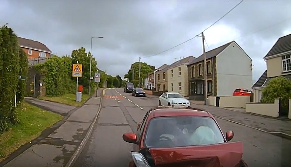 One of the clip shows a SUV dangerously pulling out from a side road when obscured by a bus, which forced a van from the road into a grass verge, narrowly missing a tree. Had the van not taken evasive action and struck the SUV from behind it would have probably been liable for the collision without the aid of event footage. In a separate incident, a car drives head on into a van when driving on the wrong side of the road overtaking parked vehicles, while another shows a van being shunted from behind into the vehicle in front.
